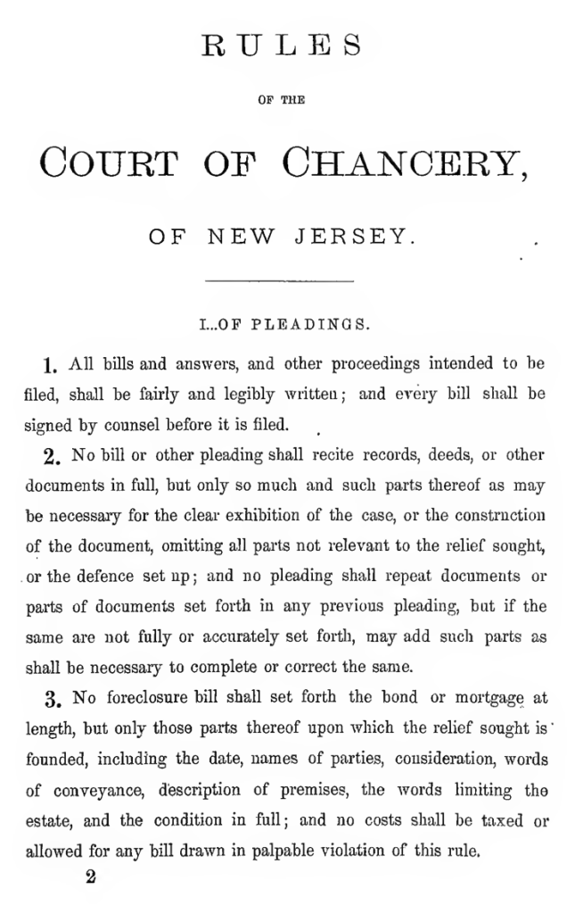 While adding some records to the library, I came across the source material from Nightrain’s equity case reference collection in the form of Precedents and Notes of Practice in the Court of Chancery (1872) Stacy G. Potts. I found this section particularly relevant to serve as a basis for our first blog post.